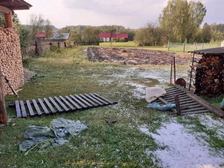 «Град был крупный, порядка трех сантиметров, при этом не исключены более крупные элементы. Льдины даже пробивали крыши теплиц. В селе Меча падали заборы и деревья. Со слов очевидцев, град размером достигал почти куриное яйцо (это около 7-8 см)», — написано в сообщении.