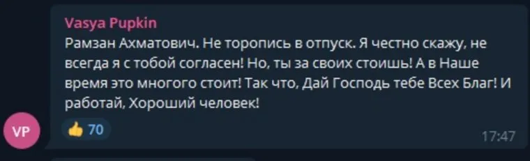 Пользователь признался, что согласен не со всеми решениями Кадырова, но ему все же стоит продолжить возглавлять Чечню