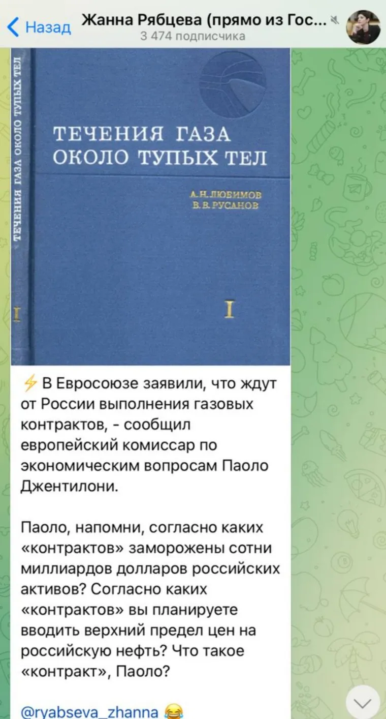 «Комиссар по экономическим вопросам Паоло Джентилони сообщил: В ЕС заявили, что ждут от РФ выполнения газовых контрактов. Паоло, напомни, согласно каких „контрактов“ заморожены сотни миллиардов долларов российских активов? Согласно каких „контрактов“ вы планируете вводить верхний предел цен на российскую нефть? Что такое „контракт“, Паоло?», — говорится в сообщении.