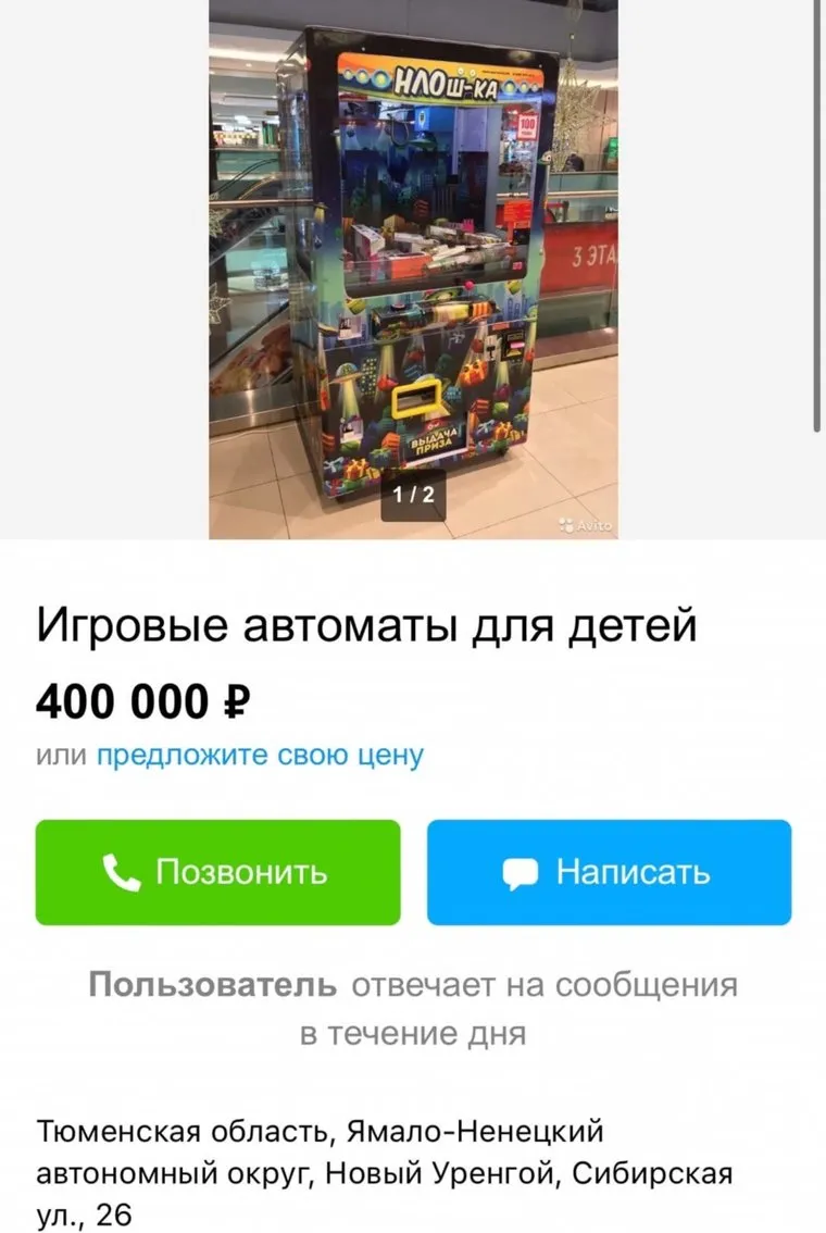 Помимо этого, в ТЦ продают точку с игровыми автоматами. «Причина продажи — смена режима работы, попросту нехватка времени и желания нет. Возможна продажа самих автоматов», — написано в объявлении продавца.
