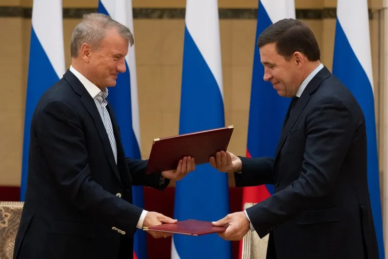 Евгений Куйвашев и Герман Греф подписали соглашение о сотрудничестве между Свердловской областью и Сбербанком