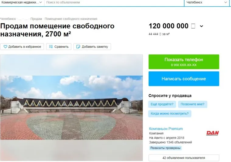 Здание-амфитеатр в Челябинске продают под досуг. Скрин