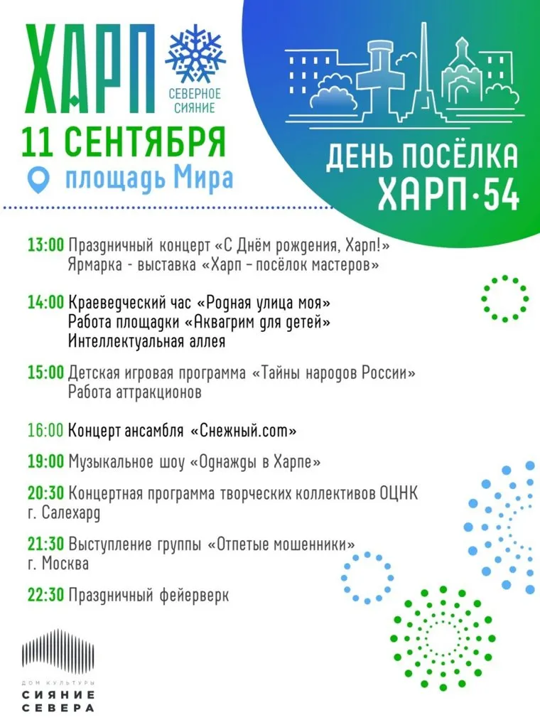 На День поселка Харп выступят «Отпетые мошенники», празднование пройдет 11 сентября на площади Мира. Об этом сообщается в одной из городских групп «Вконтакте».