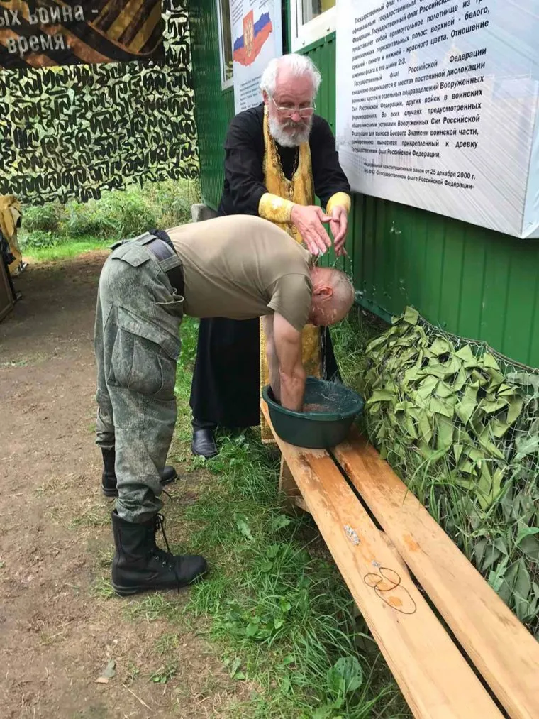 «Тюменские контрактники были направлены в учебный центр в Нижегородской области, где проходит подготовка перед отправкой на спецоперацию. Настоятель храма — иерей Владимир, сопроводил тюменцев. На месте батюшка оборудовал походный храм, где покрестил троих бойцов. Еще 15 человек исповедовались», — сообщает пресс-служба храма.
