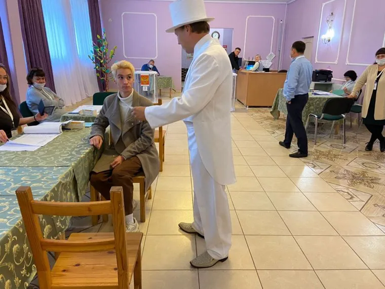 15:26 На избирательном участке Нижней Салды свердловчан встречает дворецкий. Он дарит детям шоколад, женщинам — цветы, а другим избирателям — книгу об истории улиц города.