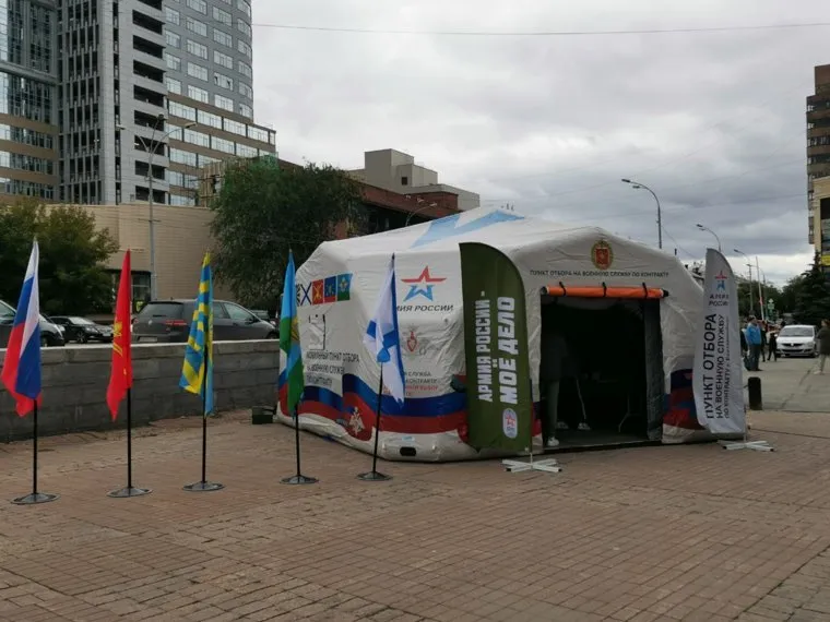 13:07 У Дома офицеров ЦВО, где открыт избирательный участок №1386, работает мобильный пункт для отбора на военную службу по контракту, сообщил корреспондент URA.RU с места событий.