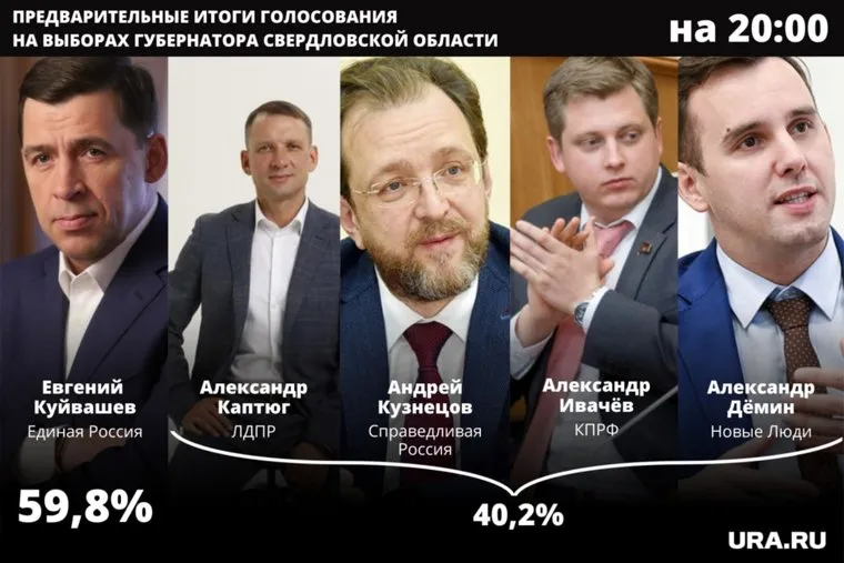 В единый день голосования в Свердловской области проходят выборы губернатора — пятые в истории региона. С 8:00 до 20:00 миллионы избирателей могут отдать свой голос за одного из кандидатов: Евгений Куйвашев («Единая Россия»), Андрей Кузнецов («Справедливая Россия — Патриоты — За правду!»), Александр Каптюг (ЛДПР), Александр Ивачев (КПРФ), Александр Демин («Новые люди»). URA.RU собирает главное с выборов в онлайн-трансляции. Сообщить о нарушениях или интересных случаях можно в наш .