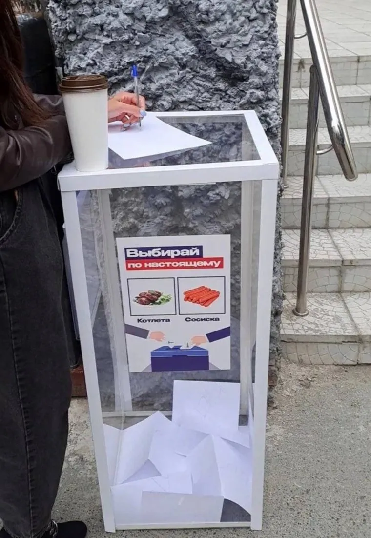 18:25 А пока свердловчане отдают свои голоса кандидатам в избирательных участках, в центре Екатеринбурга неизвестные установили своеобразные ящики для голосования. Жителям предлагают выбрать между «котлетой и сосиской» и «корешем и девушкой». Однако неизвестно, когда обнародуют результаты этих «выборов».