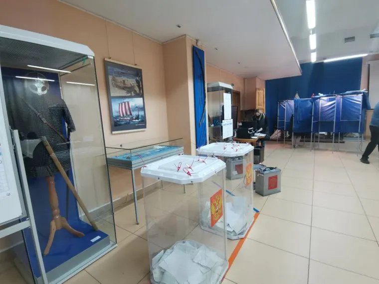 13:47 На избирательном участке, открытом в краеведческом музее, свердловчане голосуют в окружении оружия и средневековой брони.
