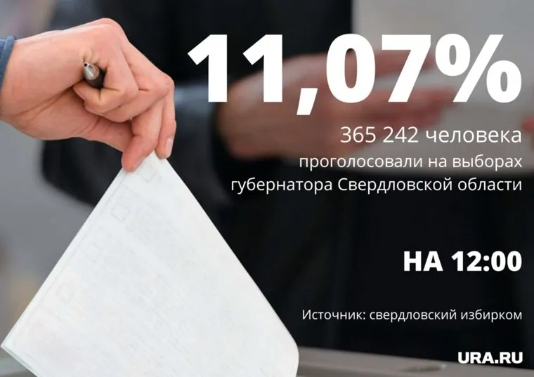 Явка на выборы губернатора Свердловской области к 12:00 11 сентября составила 11,07%, что почти в четыре раза больше, чем двумя часами ранее. Об этом сообщили в свердловском избиркоме.