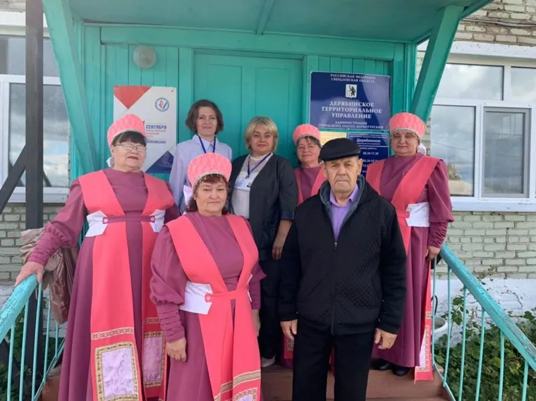 - Участок села Дерябино посетили музыканты коллектива «Березка». Они проголосовали и спели в народных костюмах.