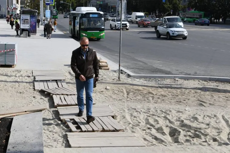 Генподрядчик мэрии Екатеринбурга — «Атомстройкомплекс» — в третий раз сорвал сроки ремонта большого пешеходного участка в самом центре Екатеринбурга, у резиденции губернатора Евгения Куйвашева, зафиксировал корреспондент URA.RU, прибыв на место. Хотя вице-мэр Алексей Бубнов, по данным агентства, обещал раздраженному главе города Алексею Орлову, что тротуар будет сдан к 15 сентября.