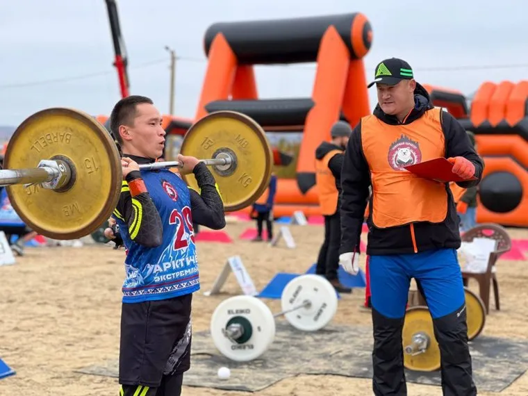 Спортсмены прошли множество испытаний — поднимали штангу, забирались по канату, таскали бревна. В дистанцию были включены и национальные виды спорта — прыжки через нарты.