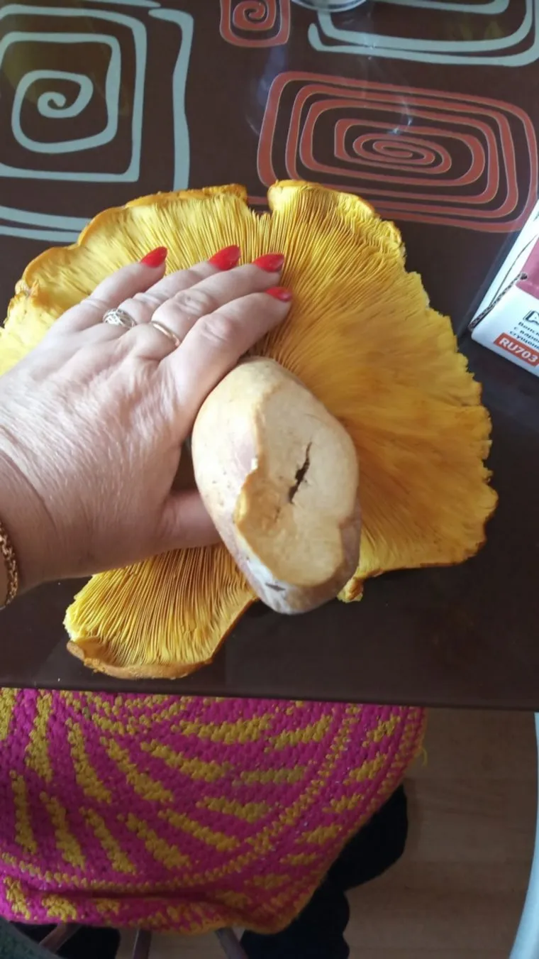 «Сегодня нашла вот такой гриб. Помогите опознать», — написала женщина, выложившая фотографии находки. На момент публикации новости выяснить, какой именно гриб был найден, подписчики канала так и не смогли.