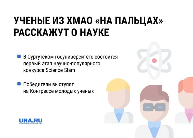 В Сургутском государственном университете состоится первый этап научно-популярного конкурса Science Slam, в рамках которого ученые простыми словами расскажут о своих исследованиях. В конце всех этапов победители конкурса выступят на Конгрессе молодых ученых. Об этом URA.RU рассказали в Сургутском государственном университете.