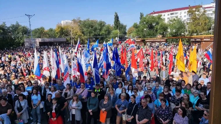 Сотни курганцев вышли на митинг в поддержку российских военнослужащих и проведение референдумов на освобожденных территориях Донбасса и Украины. Соответствующая информация опубликована в telegram-канале главы города Елены Ситниковой.