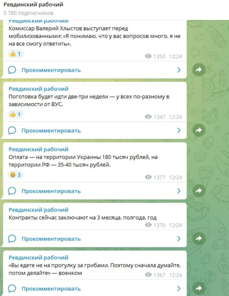 «Оплата — на территории Украины 180 тысяч рублей. На территории РФ — 35-40 тысяч рублей», — пишет со ссылкой на Хлыстова газета «Ревдинский рабочий». Ранее URA.RU писало, что на этой же встрече с призывниками Хлыстов запретил проносить в воинские части смартфоны.