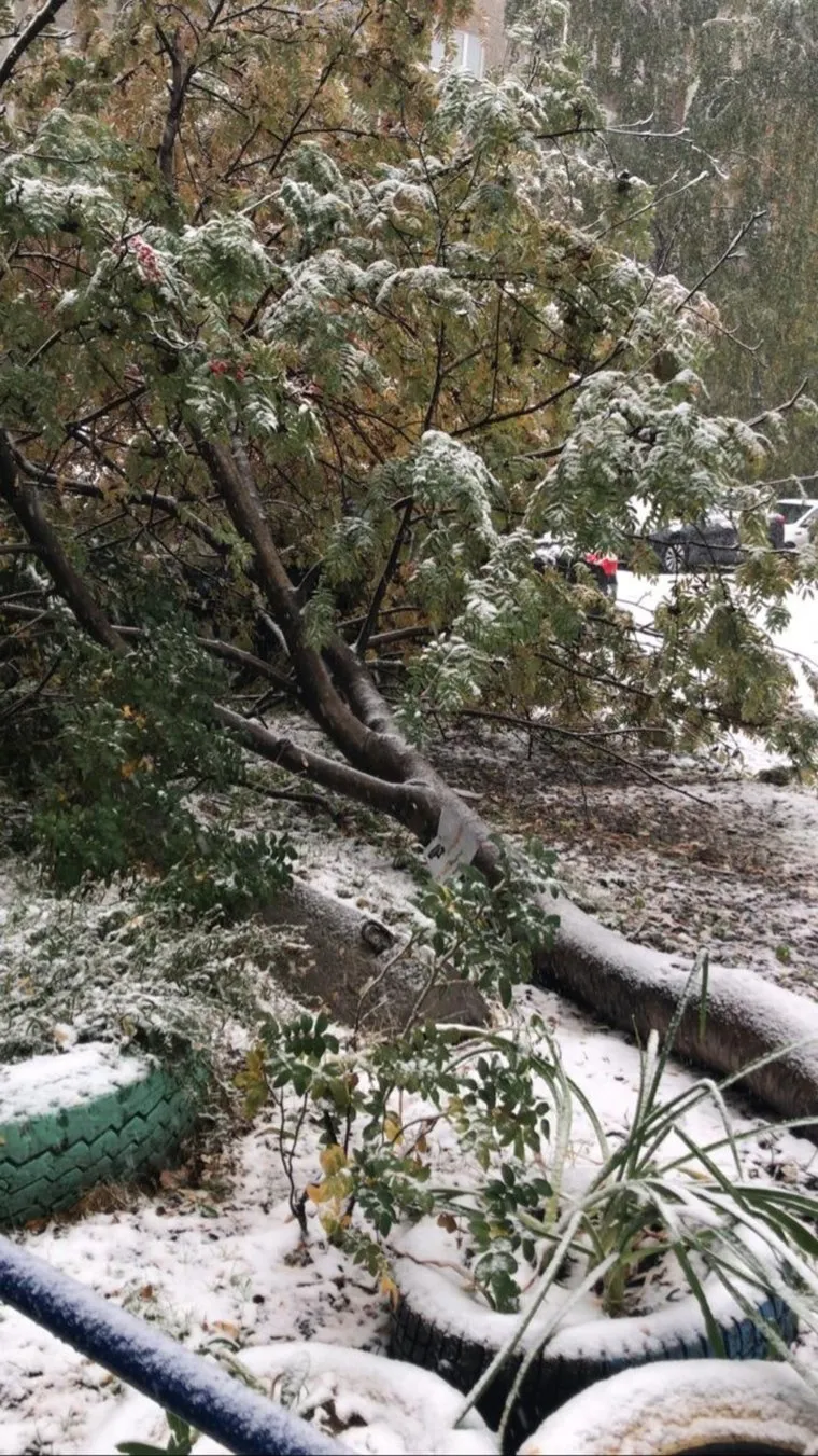 Из-за снегопада в Екатеринбурге массово валятся деревья. Фото