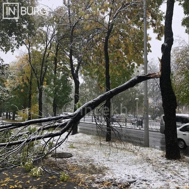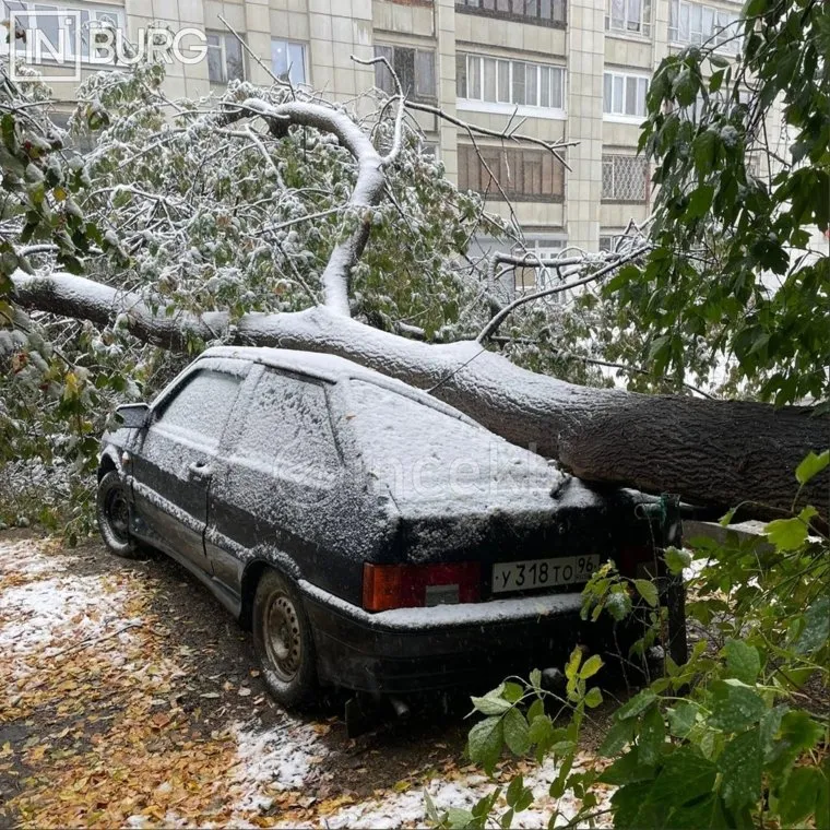 Снегопад, начавшийся в Екатеринбурге утром 26 сентября, привел к массовым падениям деревьев — в том числе на автомобили. Фотографиями горожане делятся в соцсетях.