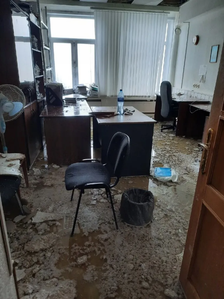 Часть офисов, расположенных в здании, из-за потопа перестала работать. Один из нотариусов, который вел там прием, временно перенес работу на дом. Горожане сообщают, что в здании несколько недель назад начался ремонт кровли. Работы закончить не успели.