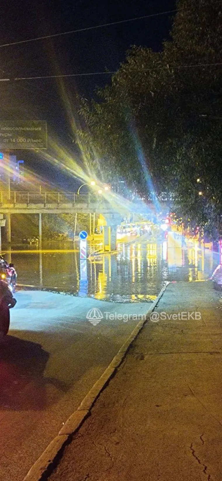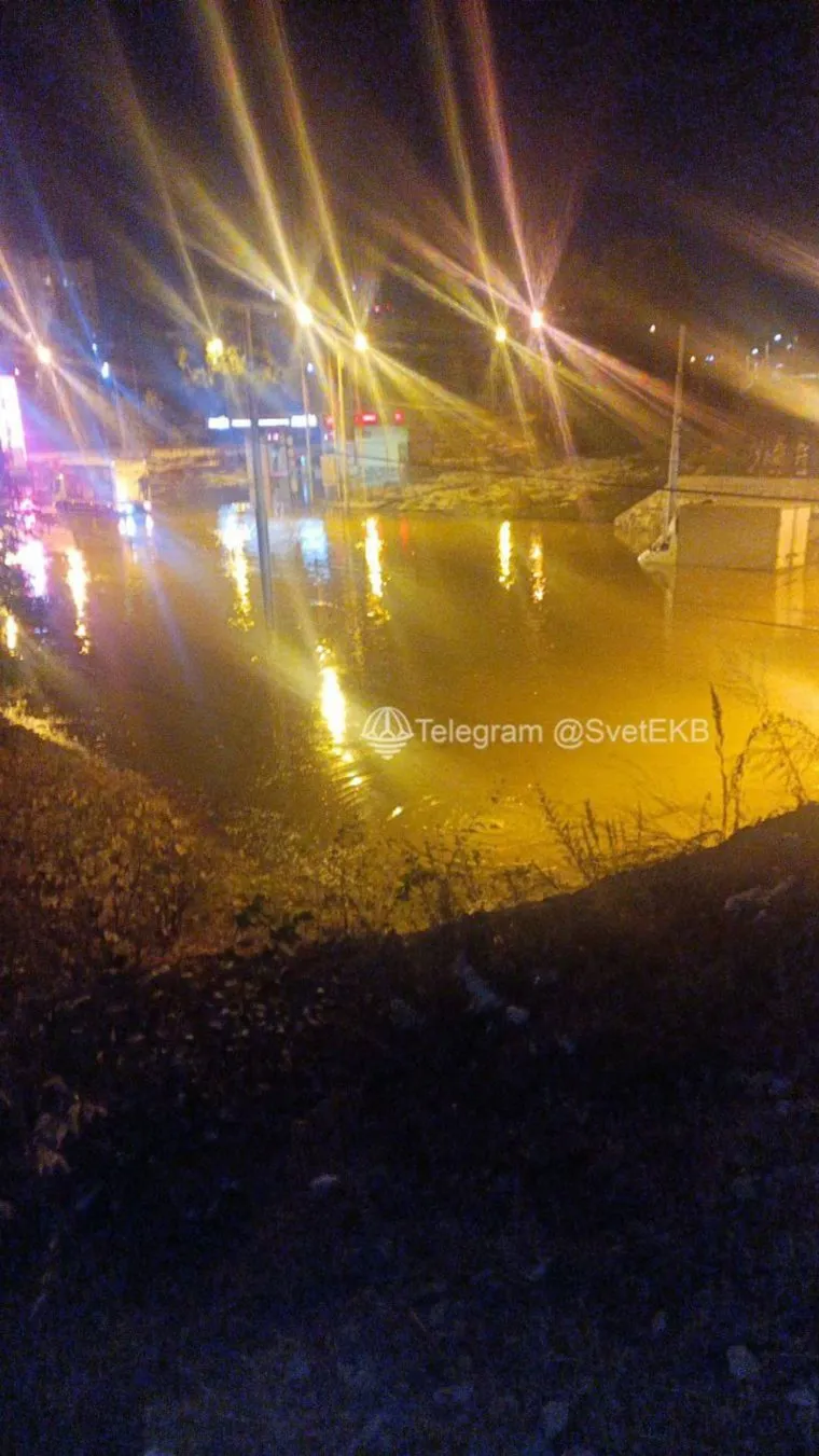 В Екатеринбурге затопило дорогу под мостом. Фото, видео