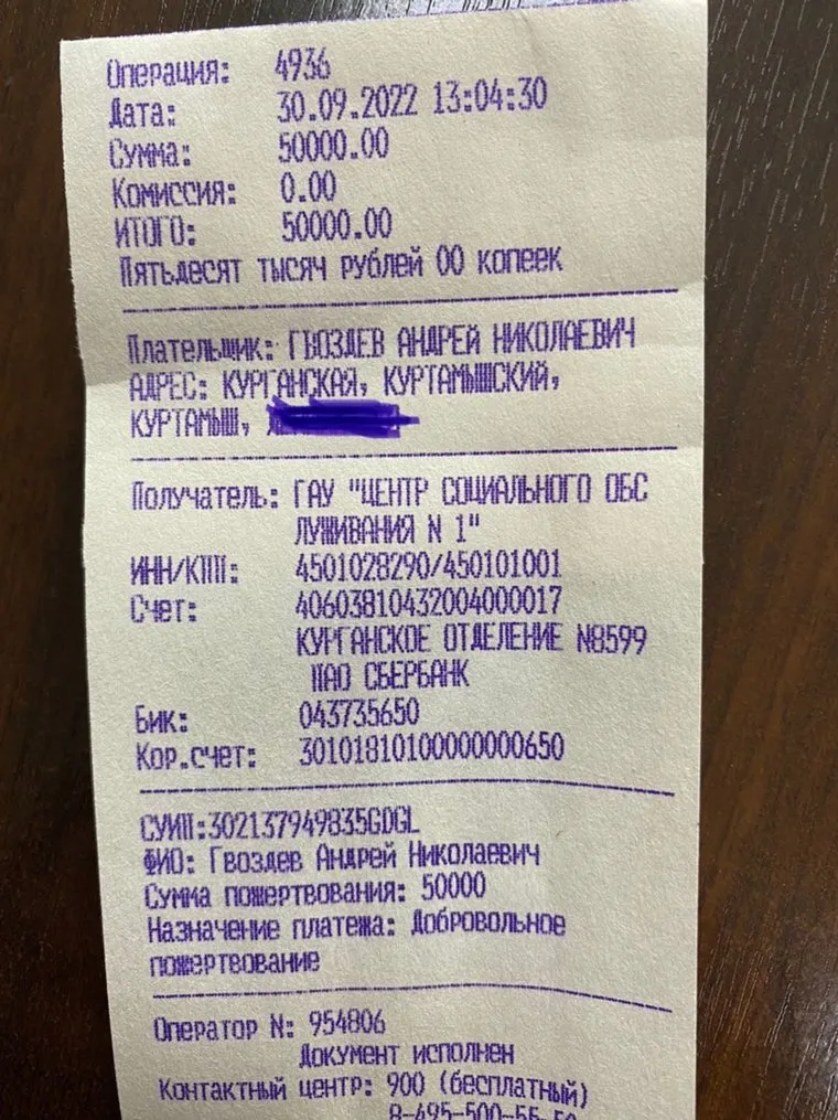 Глава курганского округа пожертвовал 50 тысяч рублей на нужды мобилизованных. Фото