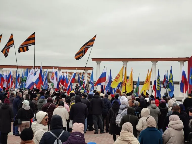 К акции присоединились представители всех политический партий. Горожане также вышли поддержать республики с флагами России.