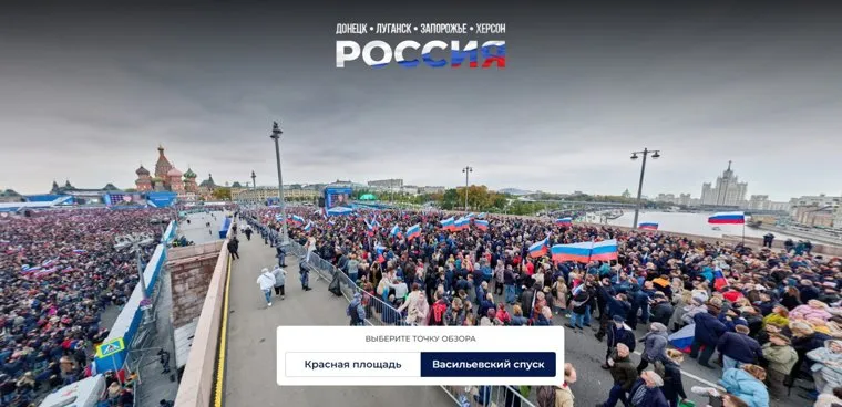 «Гигарама» сняла митинг-концерт в Москве в честь вхождения в состав РФ новых территорий. Лаборатория сделала фото высокого разрешения 360 градусов, благодаря этому его можно увеличить и рассмотреть лица зрителей. Фото опубликованы на сайте
