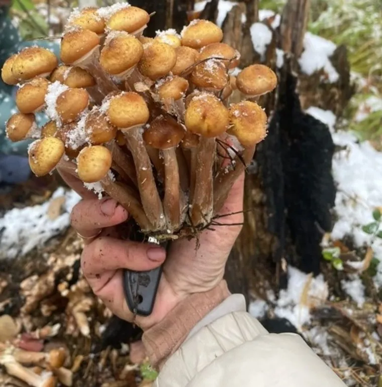 «Здорово нос поморозила, восторг неописуемый, впервые опята из-под снега собирали! Часик с дочей попрыгали, 16 литров насобирали, сезон не закрыт. Район озера Лебяжье», — написала пост Евгения Рахматулина в группе «Грибники Тюмени и Тюменской области» в соцсети «ВКонтакте», опубликовав фотографию опят.