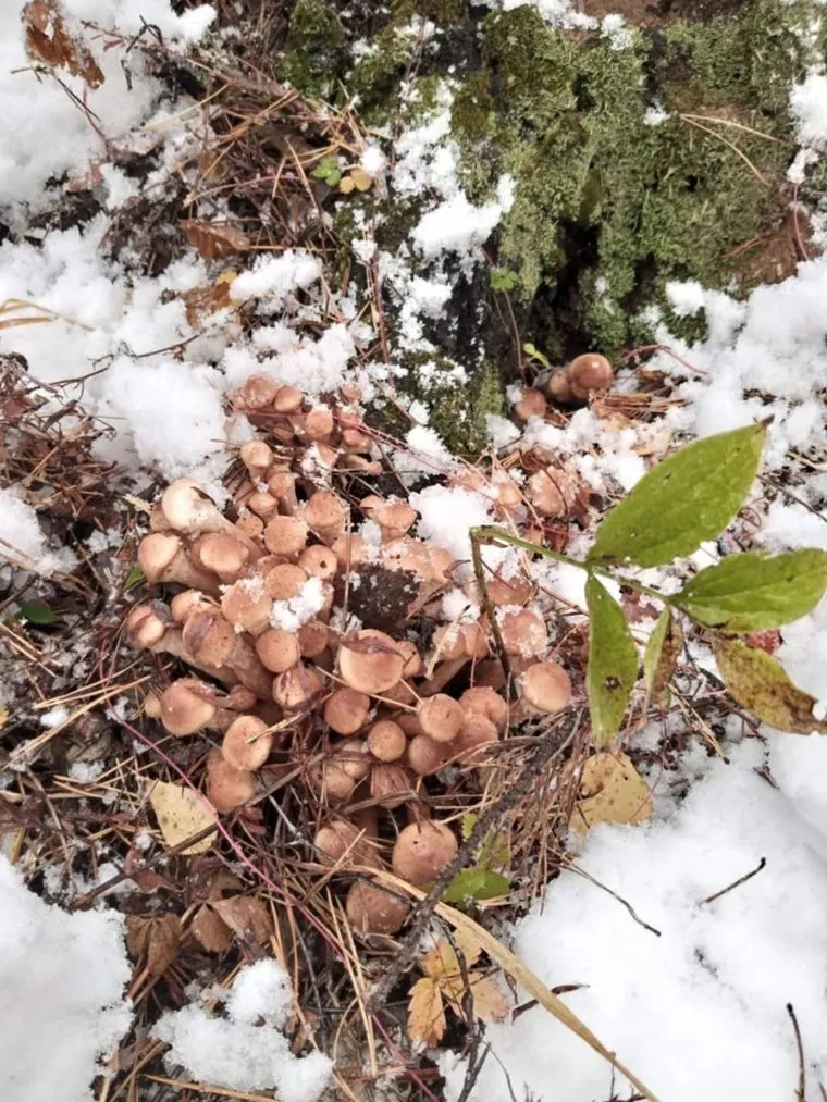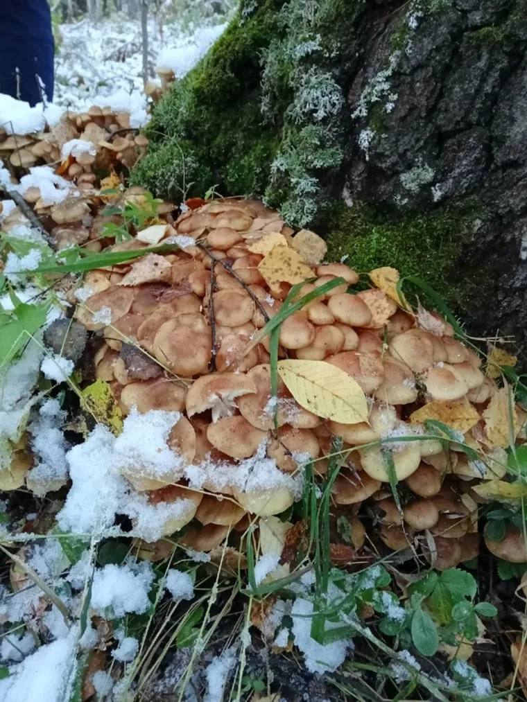 Жители Снежинска Челябинской области раскрыли места сбора подмороженных опят. Фотографиями урожая грибов они поделились в соцсетях.