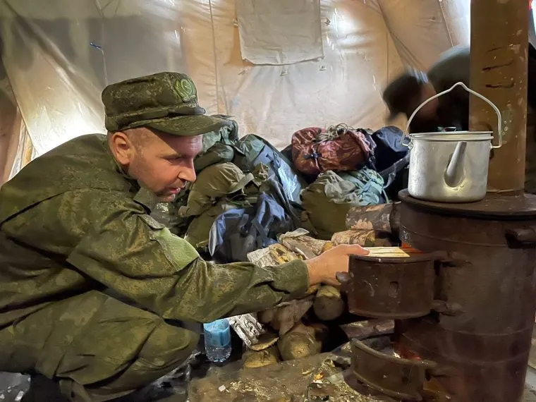 Мобилизованный из Копейска (Челябинская область) блогер Евгений Волосов сфотографировал походный быт резервистов. Призванные в армию участники спецоперации живут в армейских палатках и спят на поддонах, но не теряют боевого духа.