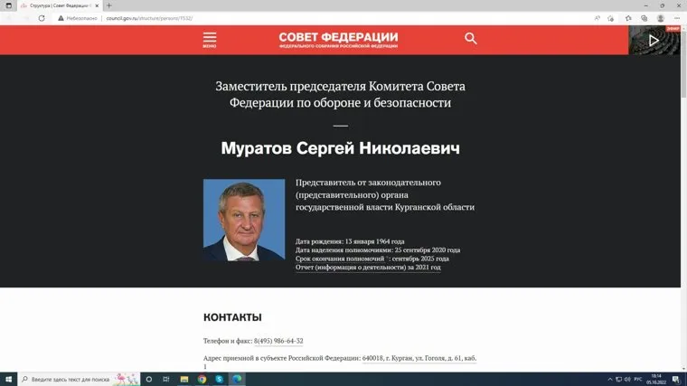 «Представитель от законодательного (представительного) органа государственной власти Курганской области Сергей Муратов назначен заместителем председателя Комитета Совета Федерации по обороне и безопаности», — указано на сайте Совфеда, решение было принято накануне. До этого Муратов являлся членом комитета.