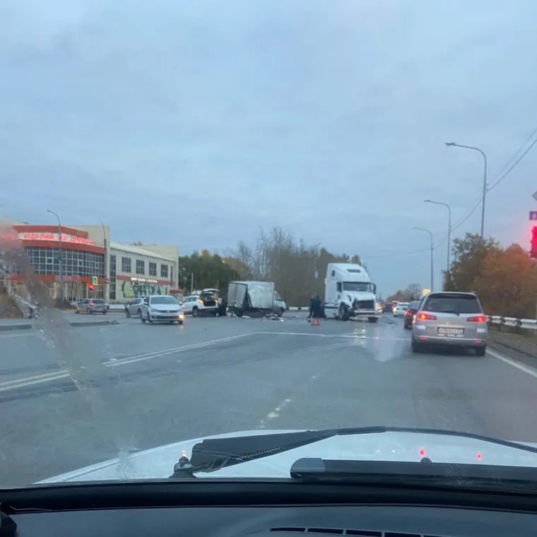 В Тюмени произошло ДТП с двумя грузовиками и легковушкой. Фото