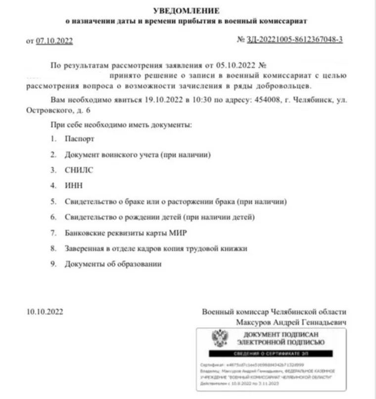 Челябинку вызвали в военкомат после ошибочно поданного заявления в добровольцы