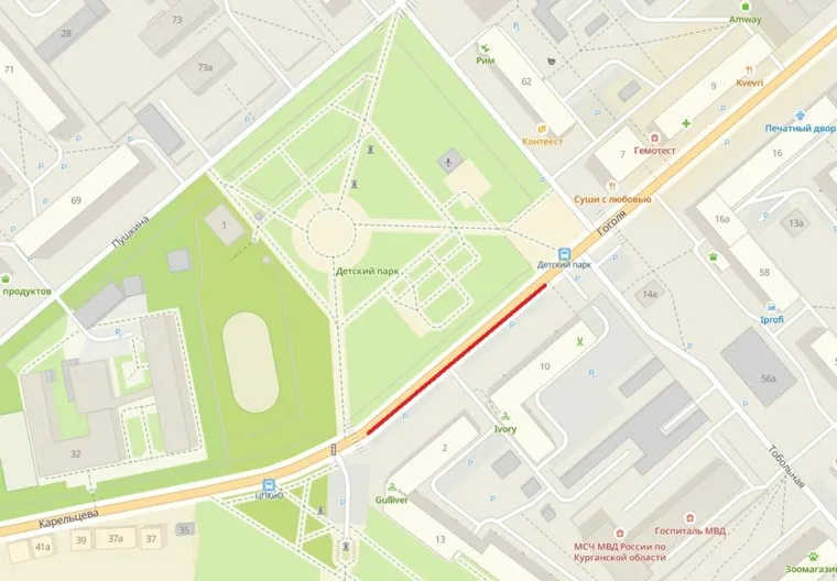 Под запрет попал участок проезжей части улицы Гоголя в районе ЦПКиО, на отрезке от дома №2 до дома №10. Также нельзя будет останавливаться на «нечетной стороне от ул. Куйбышева, 25 до пересечения улиц Куйбышева — Красина и по четной стороне от ул. Куйбышева, 2 до пересечения улиц Куйбышева — Красина». На улице Красина запрещено парковать машины по нечетной стороне от дома №23 до пересечения улиц Красина — Куйбышева и по четной стороне от дома №34 до пересечения улиц Красина — Куйбышева.