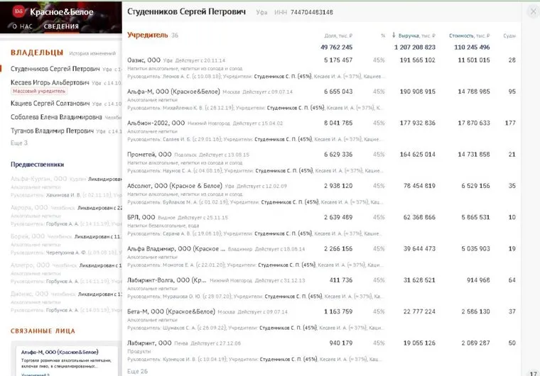 Основатель сети алкомаркетов «Красно и Белое», челябинский миллиардер Сергей Студенников и его бизнес-партнеры вернулись в число учредителей сразу нескольких десятков фирм, ранее зарегистрированных в офшоре. Кипрская офшорная компания «Меркурий Ритейл Груп Пиэлси», в свою очередь, вышла из числа учредителей, следует из данных сервиса СБИС.