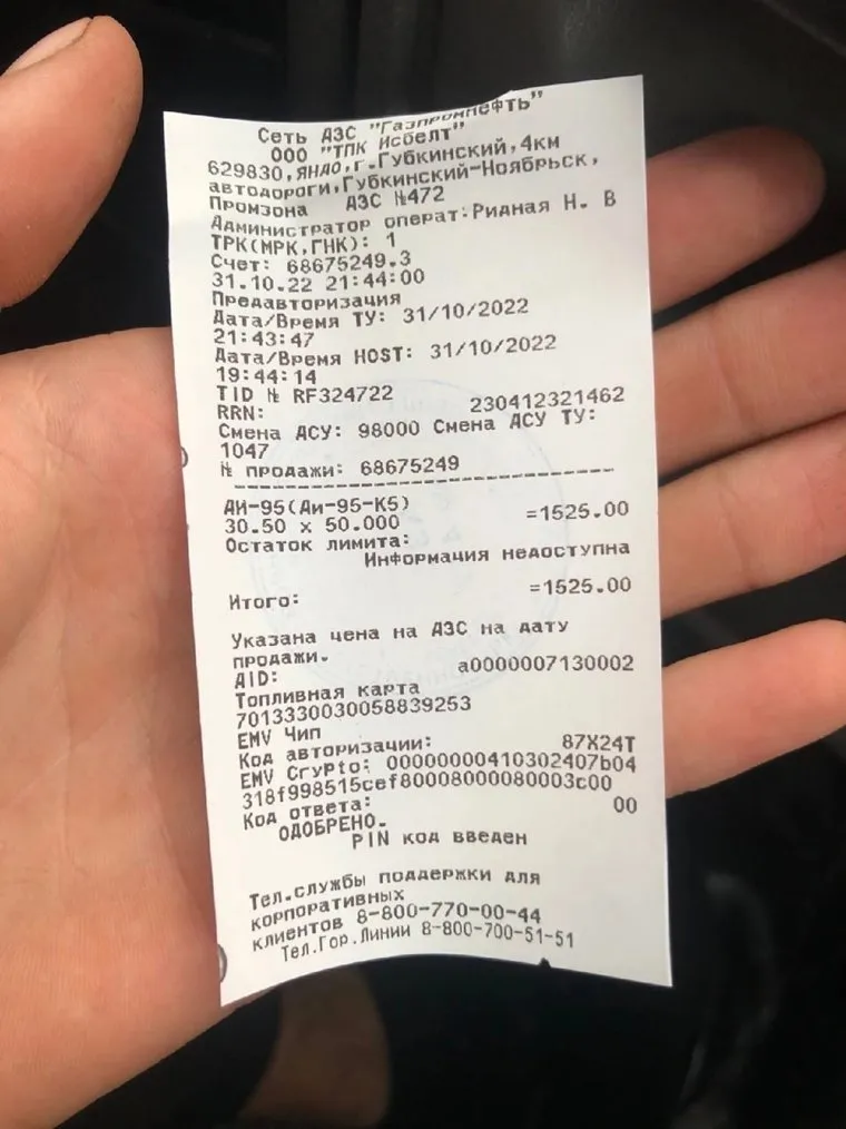 «По сети гуляет фото с ценами на бензин в Губкинском. 95-й дешевле 92-го», — написал автор. Он отметил, что фотография вызвала много споров и сомнений, но автор поспешил опубликовать фото чека.
