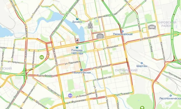 На картах «Яндекса» центр Екатеринбурга «красный» с самого утра (архивное фото)