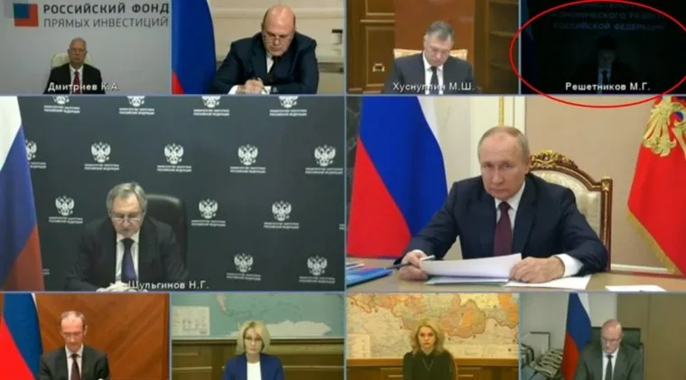 У Мантурова и Решетникова во время заседания с Путиным пропал свет