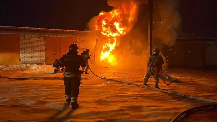 В ЯНАО вспыхнул пожар в гаражном комплексе. Фото