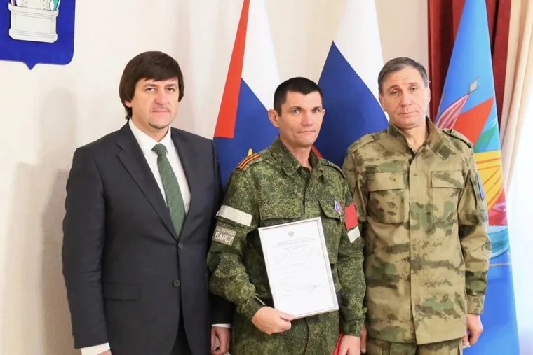 «Сегодня передали государственную награду участнику СВО Малюгину Василию Владимировичу! Указом президента России от 27.07.2022 г. №4025 рядовому Малюгину за личное мужество, исключительную отвагу, смелые и решительные действия, проявленные при освобождении и защите населенных пунктов Луганской народной республики от вооруженных агрессий со стороны Украины, присвоена медаль „За боевые заслуги“», — рассказал градоначальник.