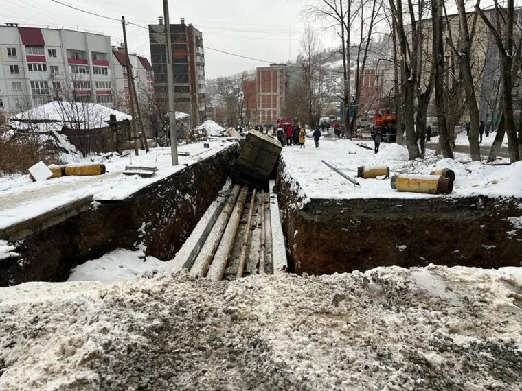 В районе Северо-Запада в Златоусте рабочие ремонтировали трубы