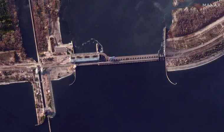 Американский спутник заснял повреждения ГЭС в Новой Каховке. Снимок опубликовала американская компания спутниковой съемки Maxar.