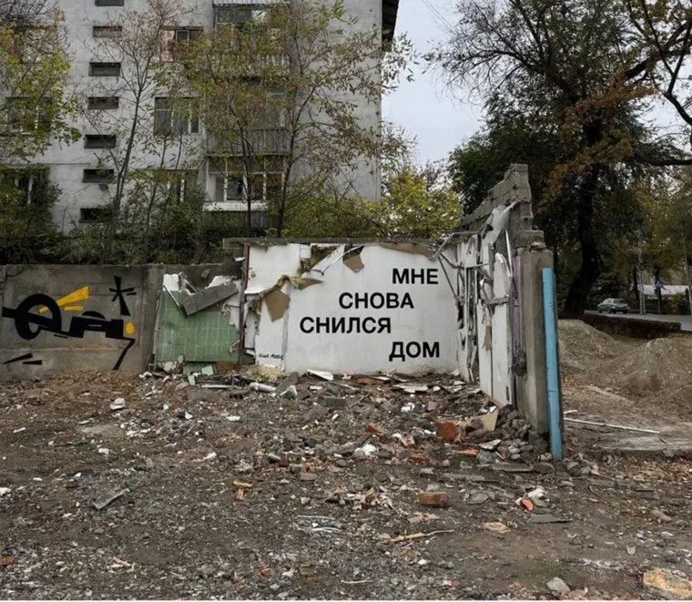 Художник из Екатеринбурга Илья Мозги посвятил свой новый арт-объект «Мне снова снился дом» в Бишкеке (Киргизия) родному городу. Об этом художник написал у себя в соцсети.