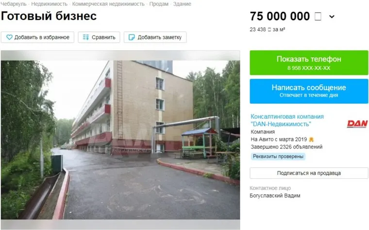 «Продается действующая база отдыха „Молодежная“ на озере Еланчик. Благоустроенный трехэтажный спальный корпус с двухкомнатными номерами-люкс со всеми удобствами и размещением от 2 до 4 человек. Земля и все строения в собственности», — говорится в объявлении на сайте «Авито».