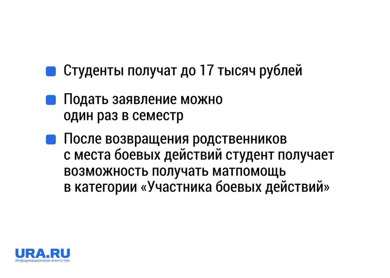 «Студенты, чьи родственники попали под мобилизацию, имеют право подать заявление на материальную помощь, указав соответствующую категорию. По решению стипендиальной комиссии университета студенты могут получить до 17 000 рублей. Подать заявление на матпомощь можно не чаще одного раза в семестр», — сказали в вузе.
