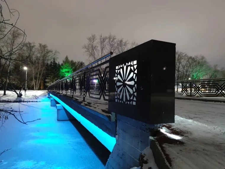 «В этом году мост отремонтировали, заменили изношенный асфальт и старый бордюрный камень. Пешеходные дорожки покрыли резиновой крошкой. Установили декоративные металлические тумбы, сделали декоративную подсветку», — написала Ситникова.