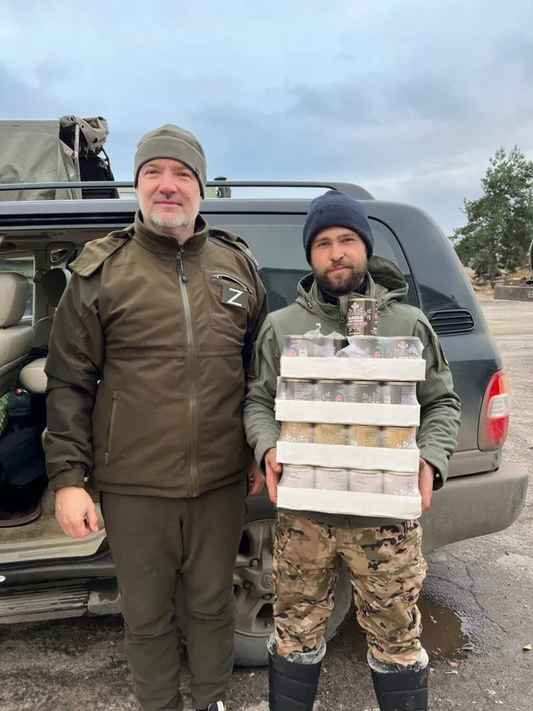 Владимир Павлов (слева) передал бойцам тысячу консервов