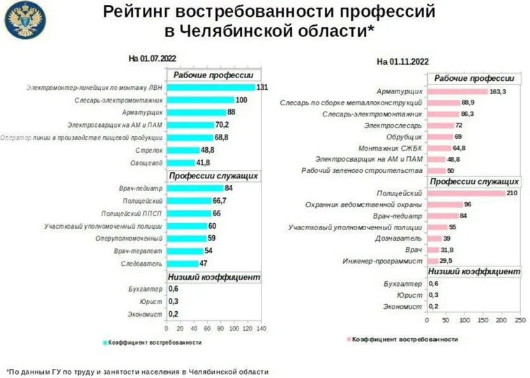 Из рабочих профессий наиболее востребованными оказались арматурщик, слесарь по сборке металлоконструкций, и слесарь-электромонтажник. А бухгалтер, юрист и экономист продолжают демонстрировать низкий уровень востребованности в регионе.