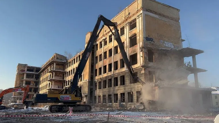 В Екатеринбурге сносят легендарную заброшенную больницу в Зеленой роще. Фото, видео